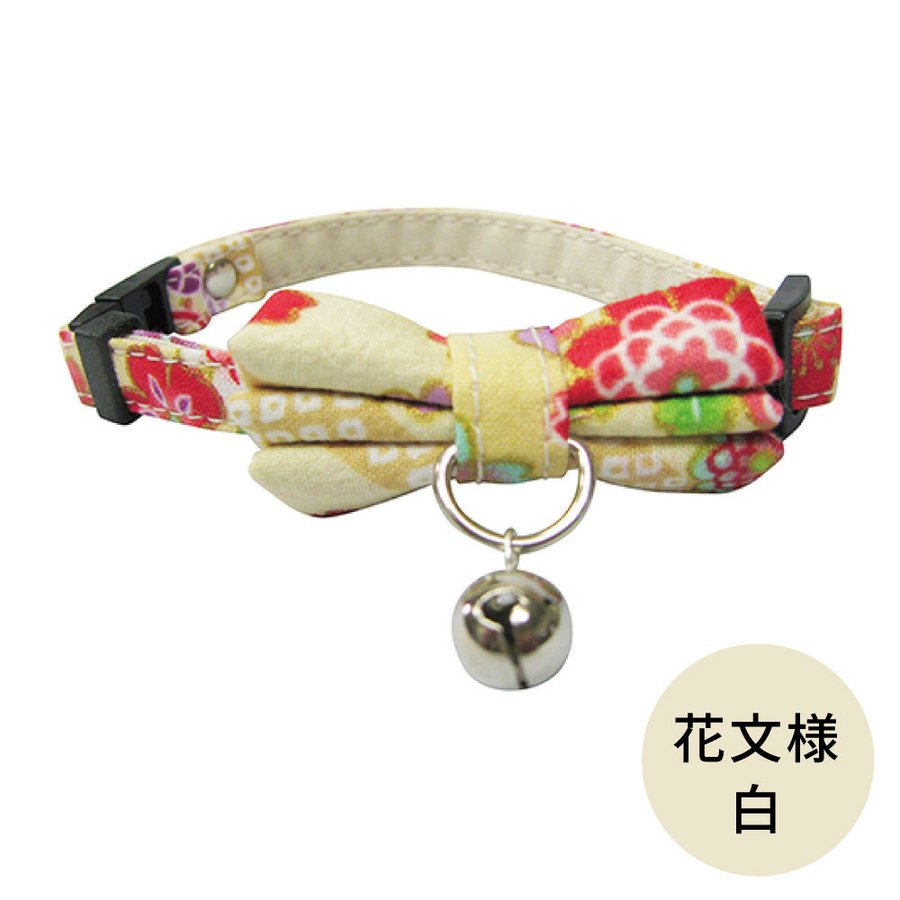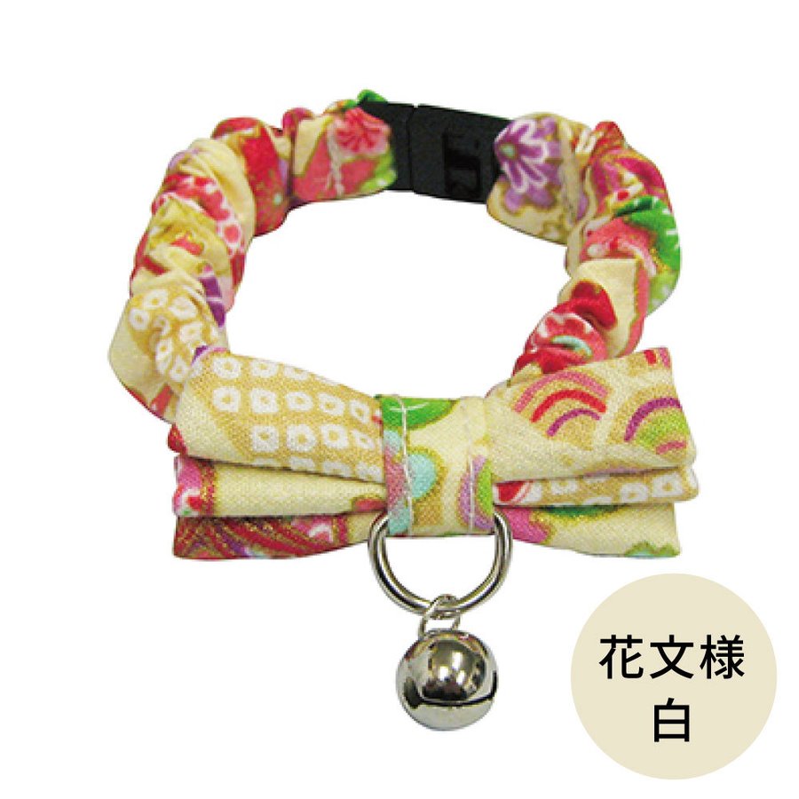 ブルーミー はずれるネコ首輪 リボン 花文様 白