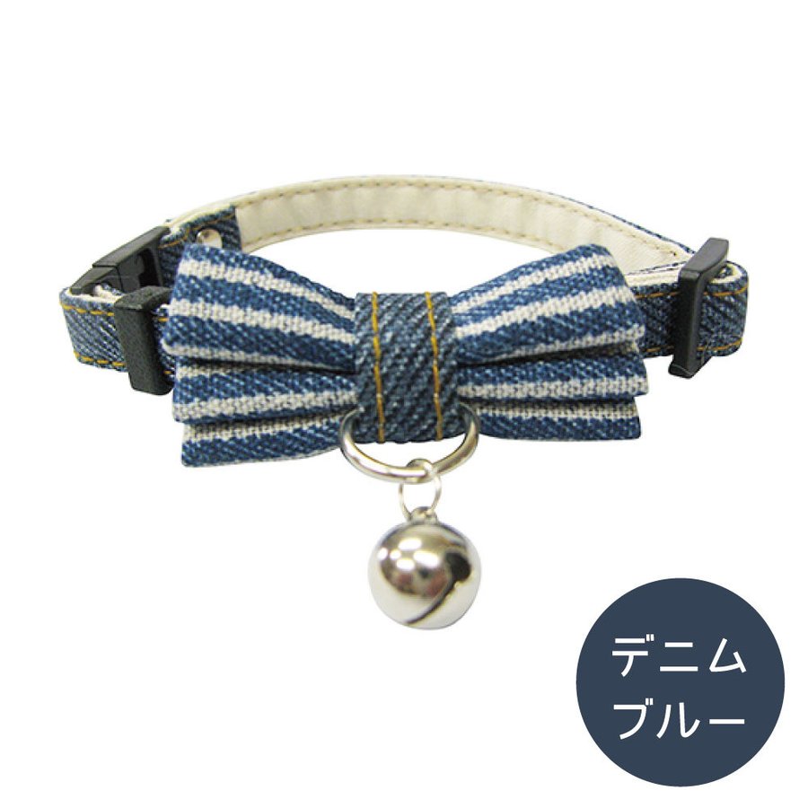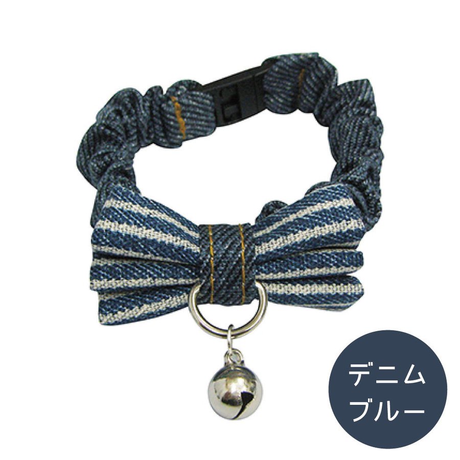 ブルーミー はずれるネコ首輪 リボン デニム ブルー
