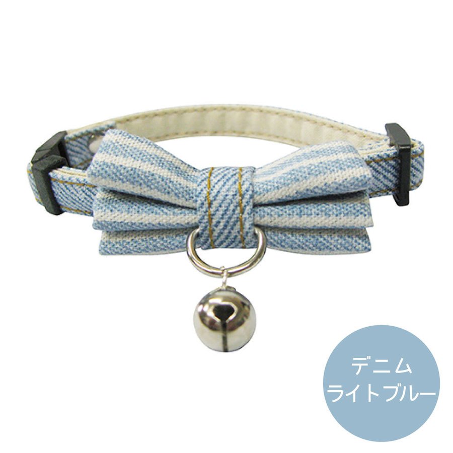 ブルーミー はずれるネコ首輪 リボン デニム ライトブルー