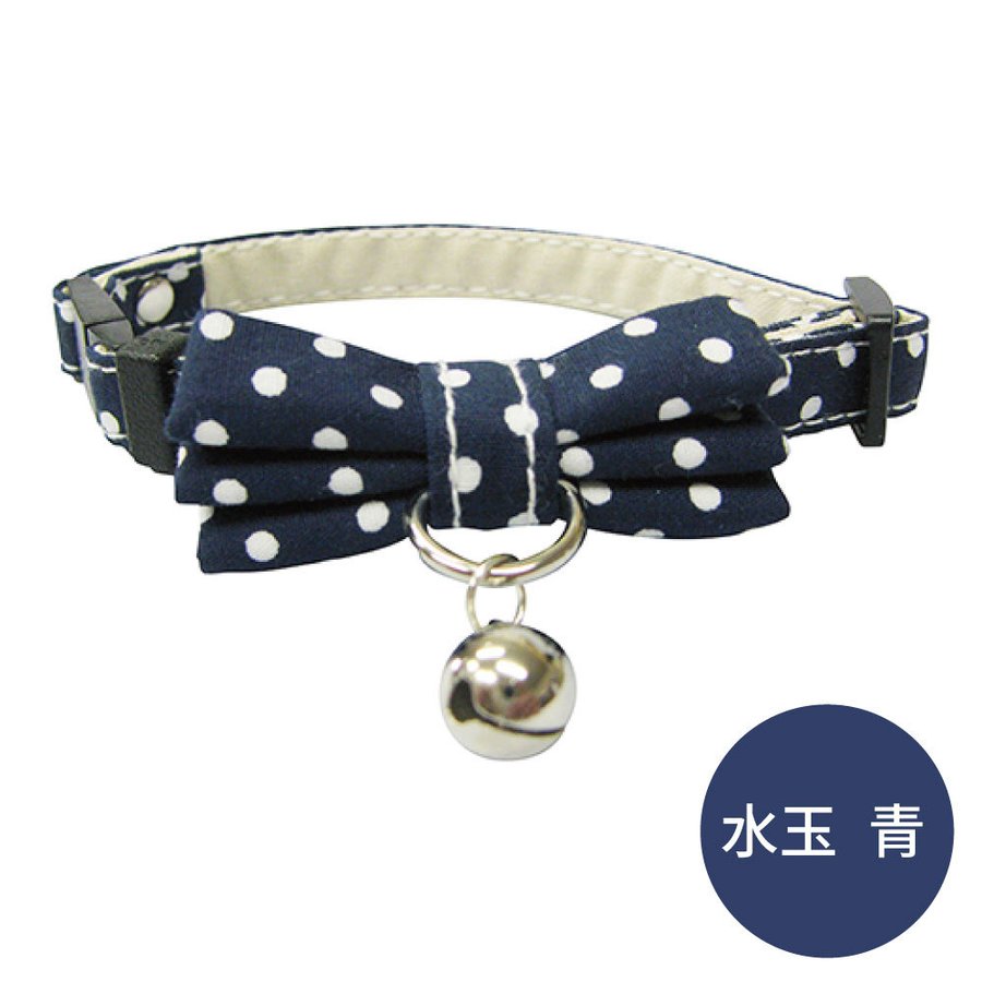 ブルーミー はずれるネコ首輪 リボン 水玉 青