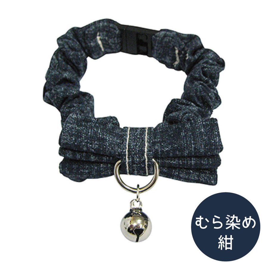 ブルーミー はずれるネコ首輪 シュシュ むら染め 紺