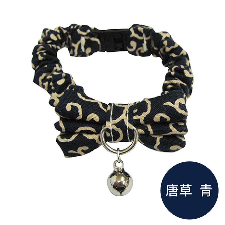 ブルーミー はずれるネコ首輪 シュシュ 唐草 青