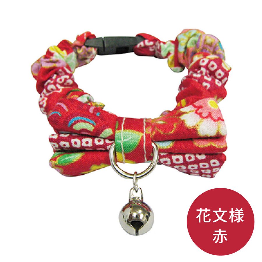 ブルーミー はずれるネコ首輪 シュシュ 花文様 赤