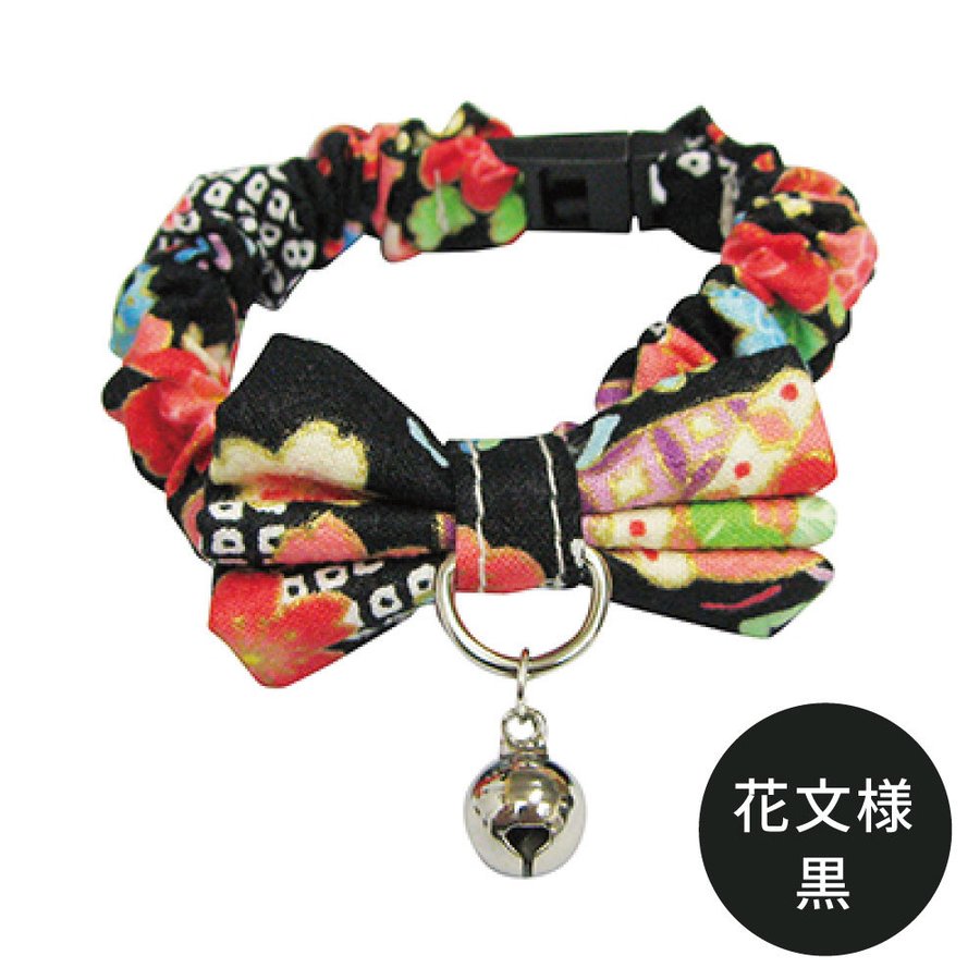 ブルーミー はずれるネコ首輪 シュシュ 花文様 黒