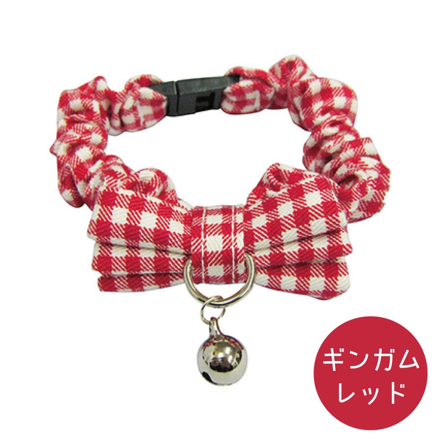 ブルーミー はずれるネコ首輪 リボン ギンガム レッド